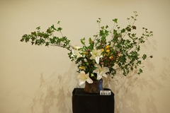 昨秋および今春のお彼岸のお中日に続く3回目の催しで、今回は「いけばな草月流師範会」顧問、イケバナインターナショナル会員としてもご活躍中の鹿取琢磨様をはじめとした14人の師範の方々の躍動感あふれる作品を展示する予定です。
